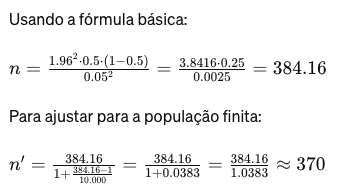 - Para estudos exploratórios ou de viabilidade, amostragens por conveniência ou bola de neve podem ser suficientes.